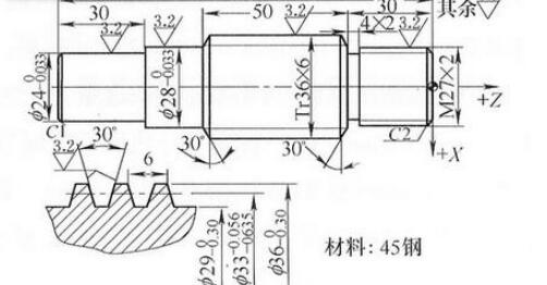 M7132平面磨床市場價和M7132平面磨床生產(chǎn)效率,并很好地保證了M7132平面磨床螺紋的尺寸精度和M7132平面磨床表面粗糙度。M7132平面磨床采用變速磨削梯形螺紋的方法來提高M7132平面磨床市場價格。M7132平面磨床加工梯形螺紋Tr36×6為例,介紹如何在CST980T系統(tǒng)的M7132平面磨床上變速磨削梯形螺紋。M7132平面磨床磨削的梯形螺紋工件如圖所示。由于M7132平面磨床梯形螺紋的螺距較小,可采用斜進搭配刀法加工,因M7132平面磨床系統(tǒng)的G76螺紋切削復(fù)合循環(huán)指令就是以斜進方式進刀的,故可采用G76指令,M7132平面磨床粗車梯形螺紋時編程如下,留出精車余量。M7132平面磨床粗車完成后,如果此時將轉(zhuǎn)速直接調(diào)到低速調(diào)用原程序精車,則一定會亂牙,發(fā)生崩刃或撞車事故,故我們在低速磨削之前要解決M7132平面磨床車刀亂牙問題才不會影響M7132平面磨床市場價。